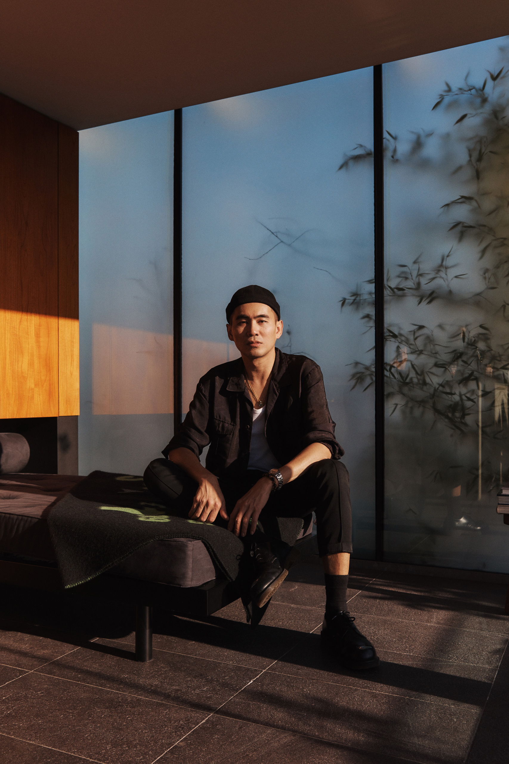 Portraits of Self Portrait brand director Han Chong in his home for Harper’s Bazaar Malaysia March 2022 issue.